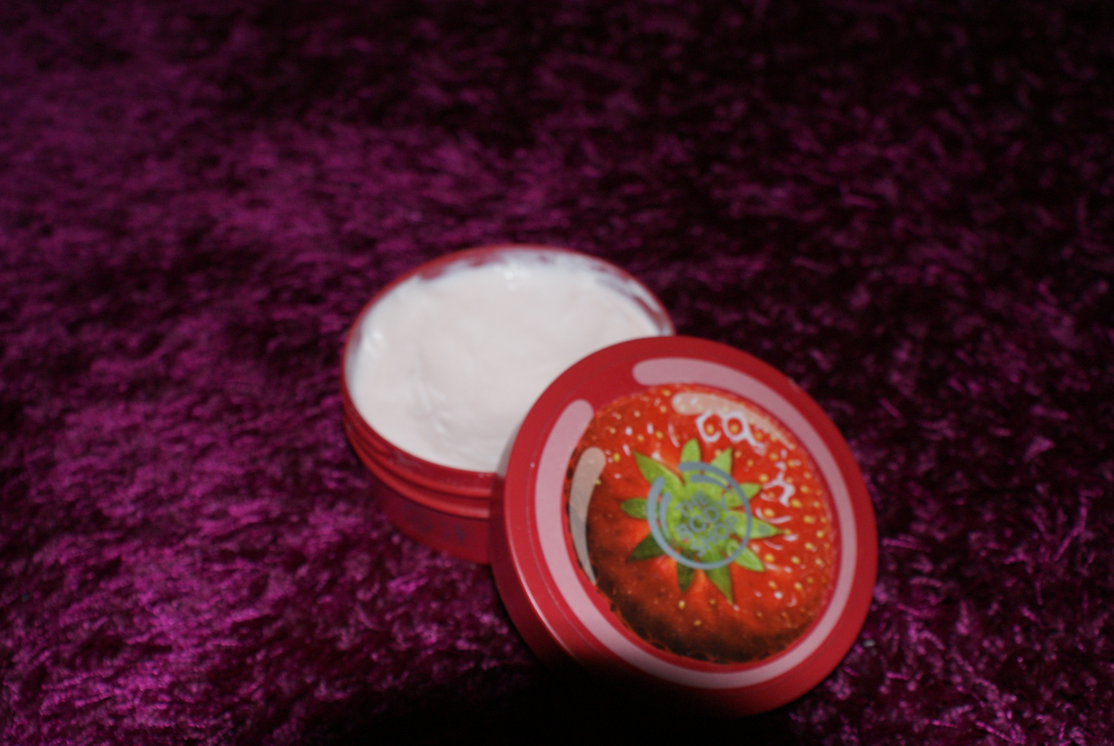 - Body Shop Strawberry Body Butter. I got this body butter from my mum as a little treat and I use this when I want something semi luxurious on my body before bed time. When wearing this Body Butter you can even get away with not wearing a perfume during the day. Its delicious smelling and you get a little waft of the smell when walking.